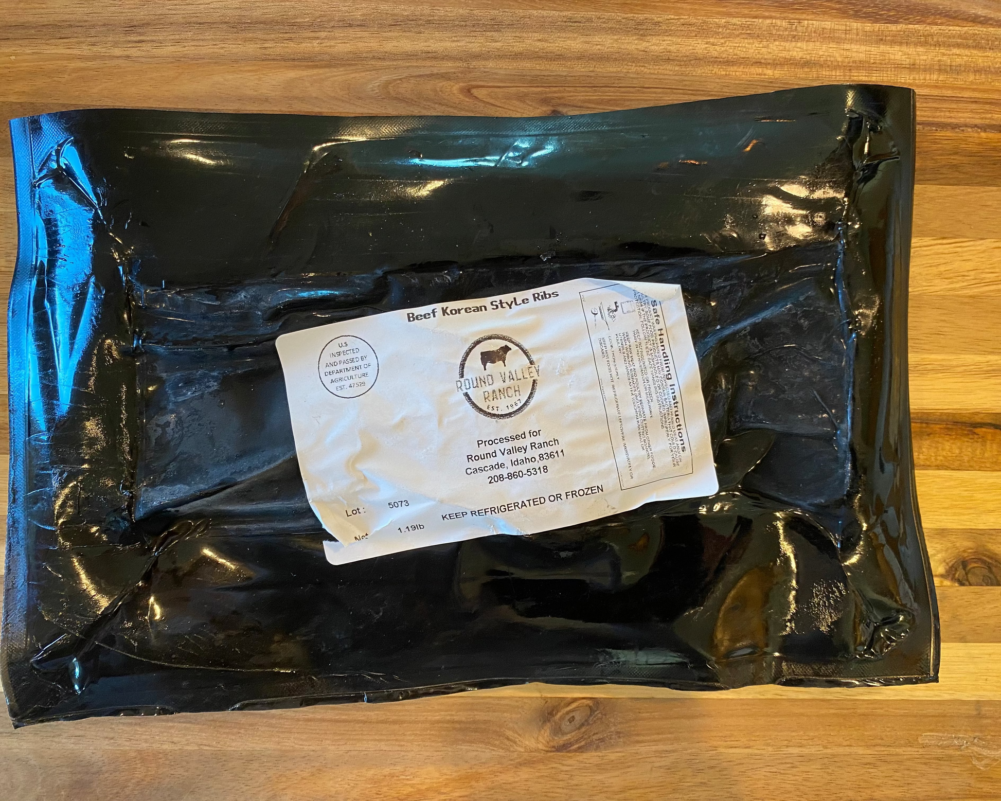 Thin, cross-cut, bone-in rib pieces perfect for marinating in a sweet and savory sauce and then grilling or pan-frying. Each package is approximately 1 lb.